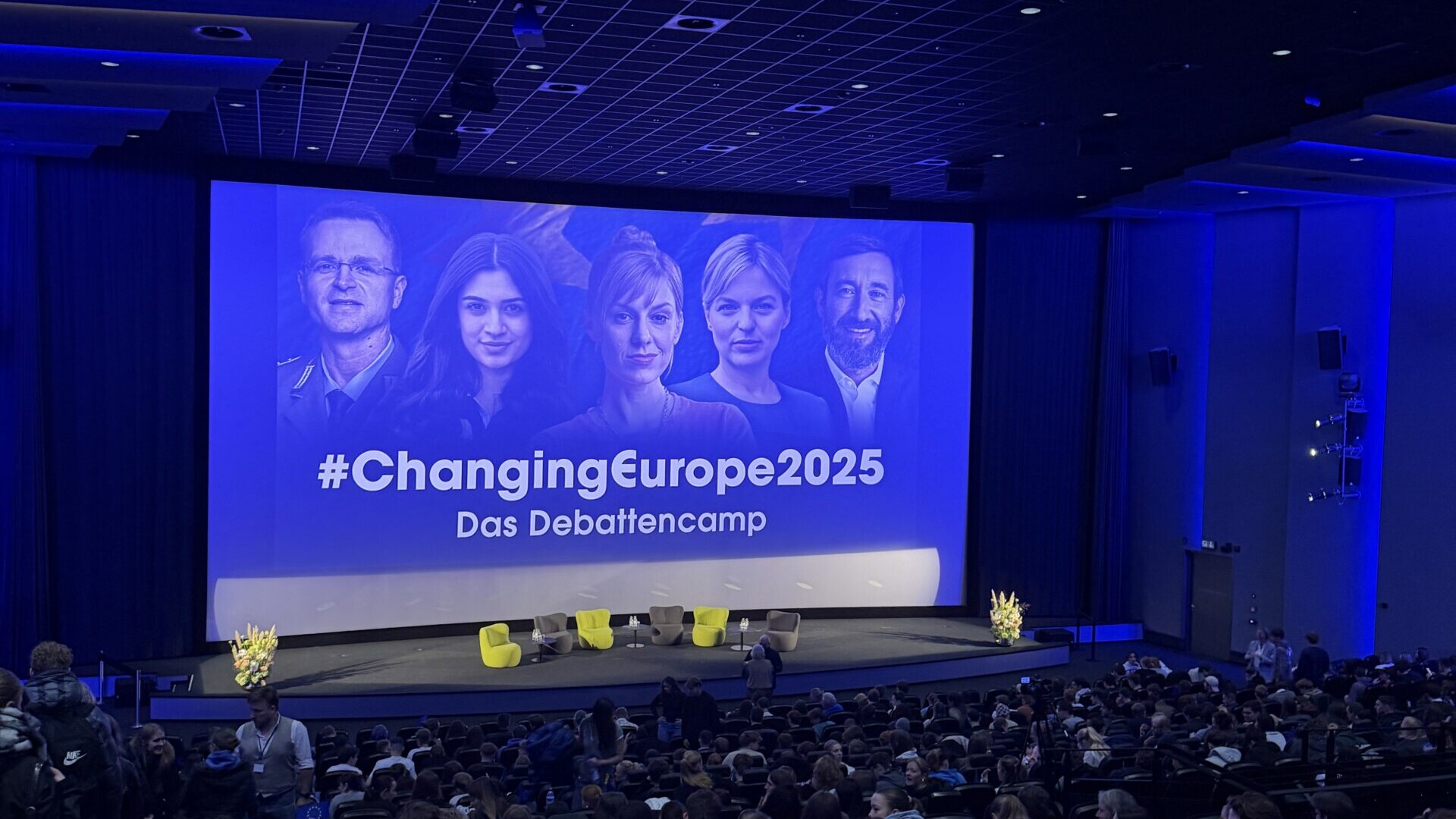 Changing Europe: Im Oktober 2025 fand unser Debattencamp zum ersten Mal im Münchner Matthäser Filmpalast statt. 1.200 junge Menschen hatten Lust auf das Thema Europa. Lust darauf, mitzureden: engagiert, wach, kritisch und klug.